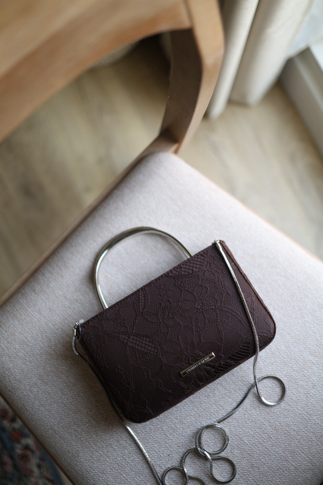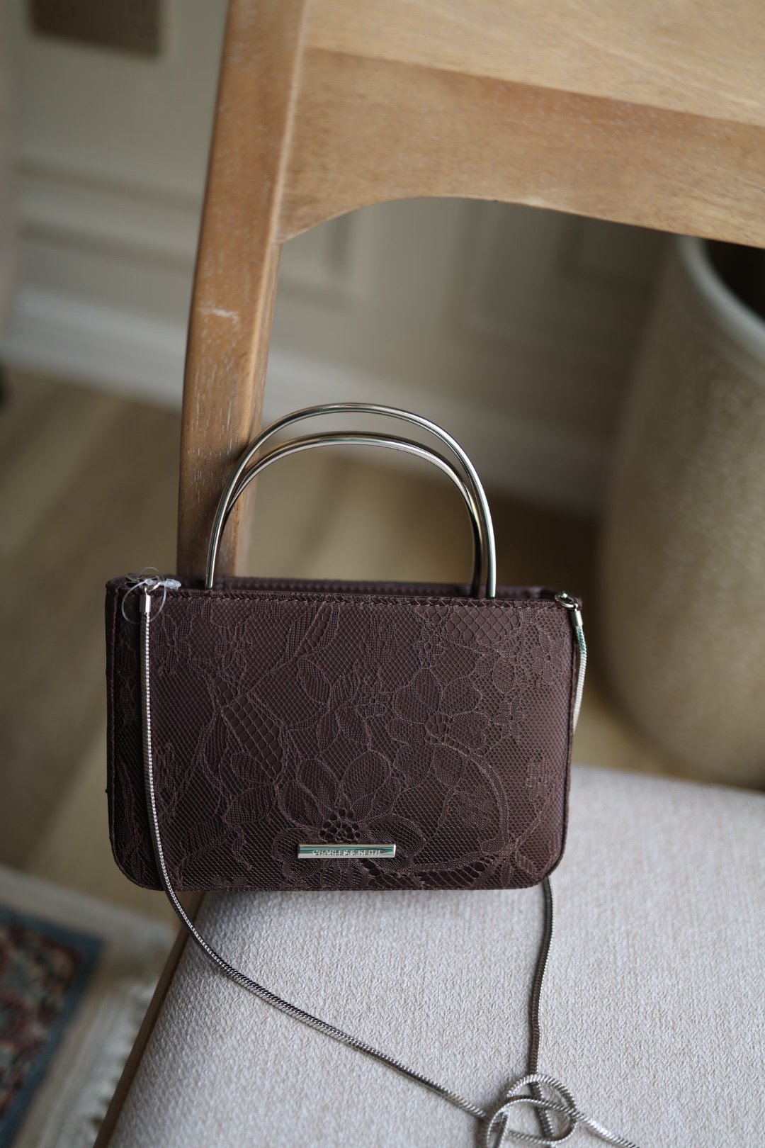Be the first to review “Jennis Lace & Satin Top Handle Bag – Dark Brown”